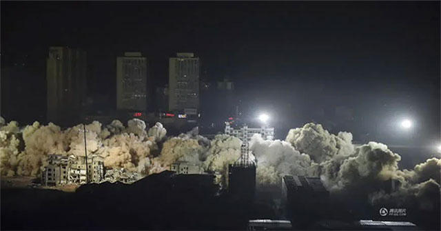 "Nửa đêm ngày 21/1/2017, tại thành phố Hán Khẩu, tỉnh Hồ Bắc, Trung Quốc, 19 tòa nhà cao…"