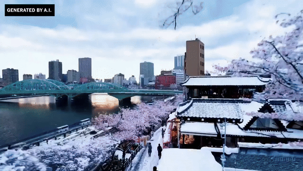 Sau khi xử lý, mô hình AI trả về một đoạn video đáng kinh ngạc, với hình ảnh thành phố Tokyo không thể nhầm lẫn và khoảnh khắc tuyệt đẹp khi những bông tuyết và hoa anh đào cùng xuất hiện trong một khung hình.